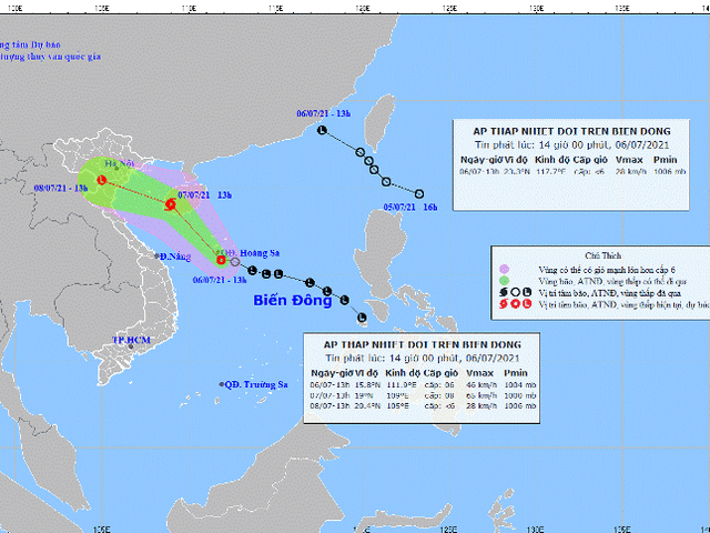 Theo Trung tâm Dự báo Khí tượng Thủy văn Quốc gia, áp thấp nhiệt đới di chuyển theo hướng Tây Tây Bắc, mỗi giờ đi được 20-25km và có khả năng mạnh lên thành bão.