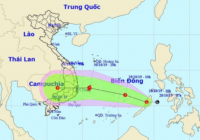 Trưa nay 28/10, vùng áp thấp vượt qua phía Bắc đảo Palawan Philippines và đi vào Biển Đông.