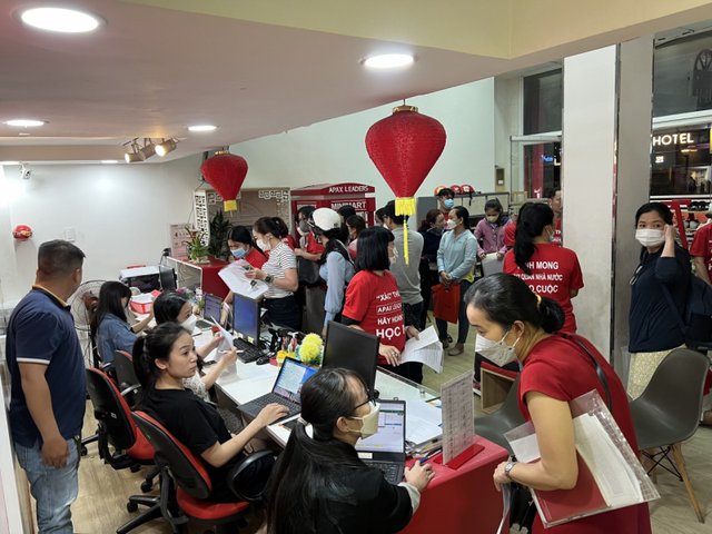 Rất nhiều phụ huynh, giáo viên và nhà đầu tư tham gia góp vốn trên khắp cả nước, trong đó có TP Hồ Chí Minh đang trao đổi cách lấy lại tiền tại Apax Leaders.