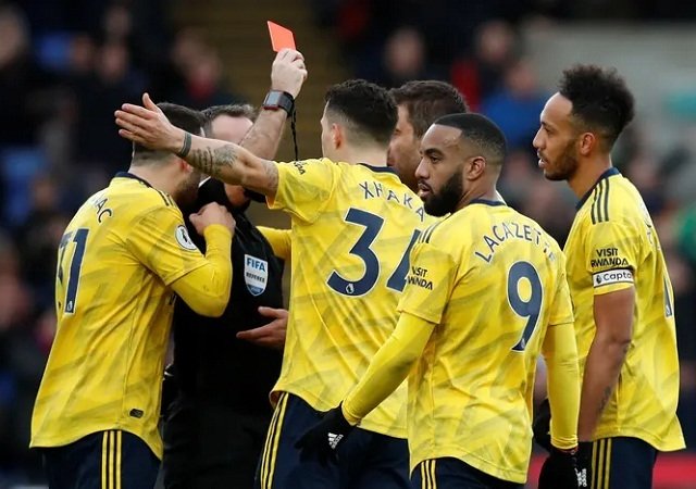 Tiền đạo Pierre-Emerick Aubameyang nhận thẻ đỏ khi Arsenal hòa Crystal Palace 1-1 ở vòng 22 Ngoại hạng Anh, tối 11/1.