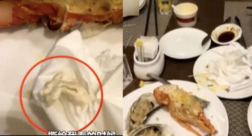Khách thấy bã kẹo trong tôm hùm, nhà hàng Trung Quốc nói 'do tôm ăn'