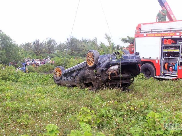 Công an Tiền Giang bước đầu xác định 3 nạn nhân tử vong trong vụ ô tô Mercedes nằm dưới kênh là do ngạt nước.