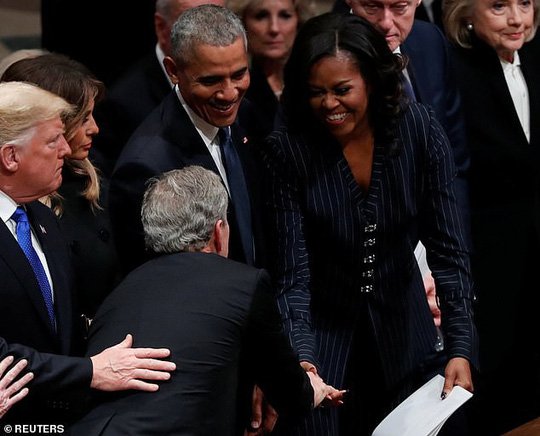 Bận tang lễ cha, ông Bush vẫn nhớ chuyền kẹo cho bà Obama