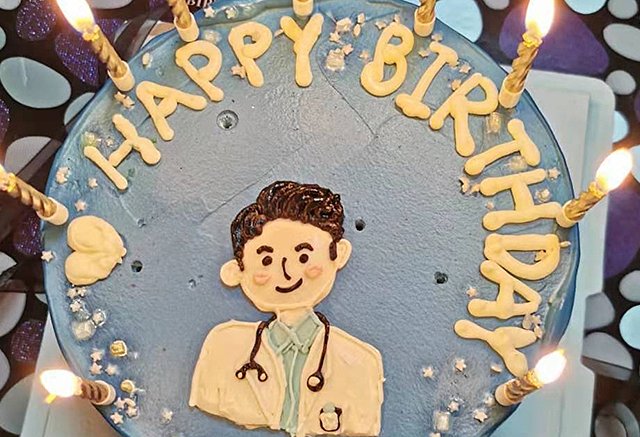 Ngày sinh nhật của Dong Fang, chồng cô gửi cho vợ chiếc bánh kem có hình anh kèm theo lời nhắn mình đã bị nhiễm virus corona.