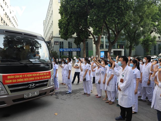 Với tinh thần tất cả vì miền Nam ruột thịt, trong ngày 26/7 đã có hàng trăm y bác sĩ, nhân viên y tế tại nhiều bệnh viện tuyến trung ương, địa phương trên cả nước đã lên đường “Nam tiến” kề vai sát cánh, chung sức đồng lòng cùng TPHCM và các tỉnh phía Nam phòng chống đại dịch COVID-19.