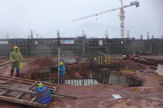 Nhộn nhịp công trường thi công hồ điều hòa gần...