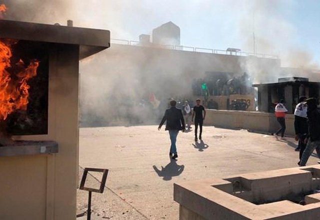 Hàng trăm người biểu tình ủng hộ Iran hôm 31/12 đã nỗ lực đột nhập Đại sứ quán Mỹ tại Baghdad, trèo lên tường và phá các cổng của khu phức hợp.