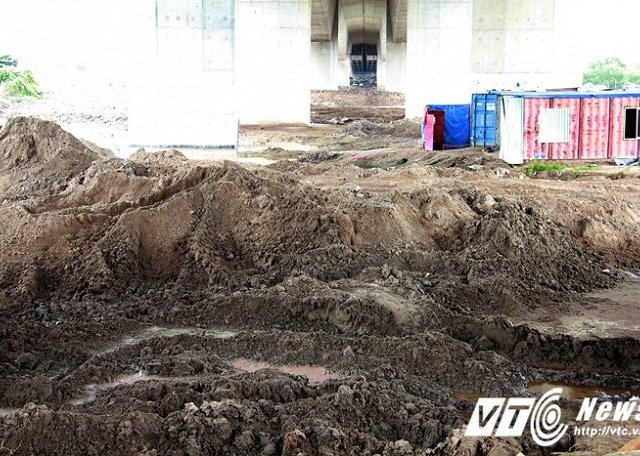 Gầm cầu cao tốc Hà Nội - Hải Phòng đoạn qua địa bàn phường Hải Thành, quận Dương Kinh, TP Hải Phòng bị chiếm dụng làm bãi tập kết, vận chuyển cát xây dựng, đe dọa an toàn của những trụ cầu.
