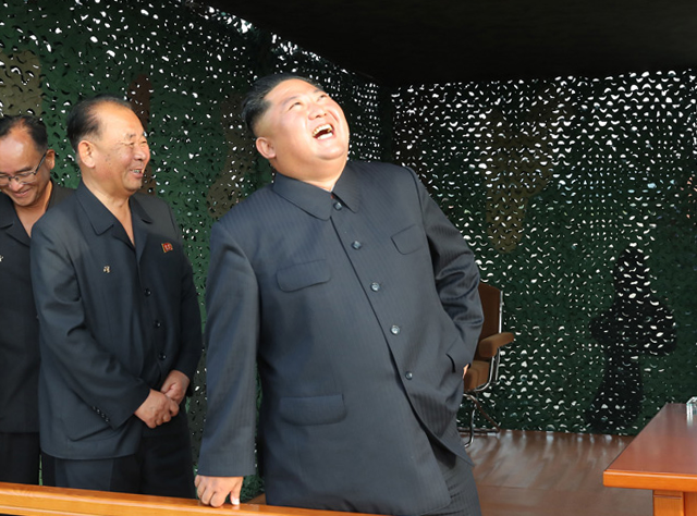 Hình ảnh truyền thông Triều Tiên công bố cho thấy bà Kim Yo-jong đứng gần anh trai Kim Jong-un chứng kiến vụ thử vũ khí ngày 24/8.
