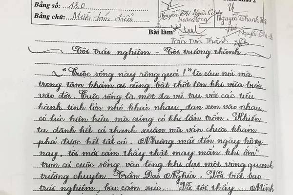 Bài văn “Tôi trải nghiệm – Tôi trưởng thành” của Bùi Ngọc Hân, lớp 8 Trường THCS Phạm Văn Chiêu (Gò Vấp, TP.HCM) đã chạm đến cảm xúc của người đọc. Đây cũng là bài văn có điểm cao nhấtcuộc thi Văn hay chữ tốt cấp TP.HCM