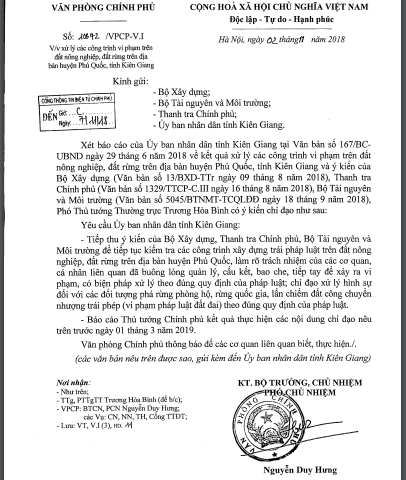 Phó Thủ tướng yêu cầu phải làm rõ trách nhiệm của các cơ quan, cá nhân liên quan đã buông lỏng quản lý, cấu kết, bao che, tiếp tay để xảy ra vi phạm về đất đai ở Phú Quốc và có biện pháp xử lý theo đúng quy định của pháp luật.