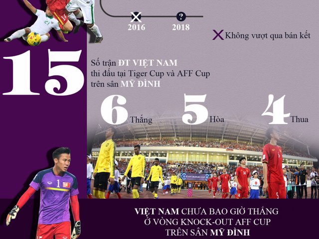 Thống kê chỉ ra rằng, Việt Nam chưa bao giờ thắng trong các trận thuộc vòng knock-out tại AFF Cup trên sân Mỹ Đình.