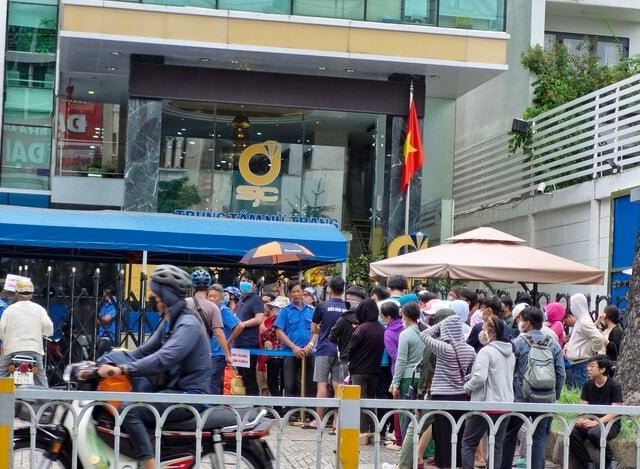 Hình thức bán vàng của SJC tương tự như 4 ngân hàng, không còn phát số đăng ký trực tiếp mà chỉ bán cho khách đăng ký online, đến cửa hàng nhận vàng.