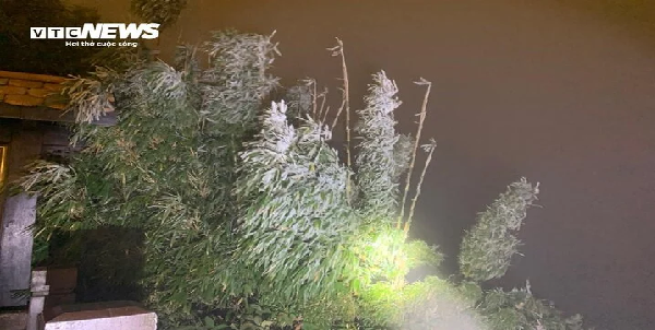 Tối 25/12, đỉnh Fansipan (thị xã Sa Pa, Lào Cai) nhiệt độ giảm sâu, băng giá bắt đầu xuất hiện.