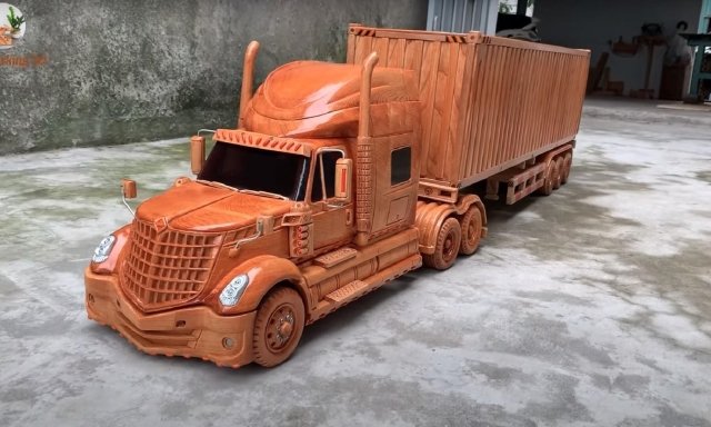 Mô hình xe đầu kéo International LoneStar bằng gỗ của thợ Việt được chế tác hoàn hảo đến mức chẳng khác xe thật là bao.