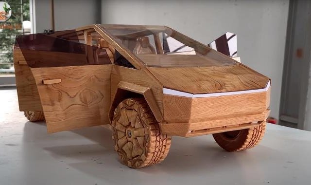 Hình ảnh Tesla Cybertruck bằng gỗ của thợ Việt trên báo ngoại
