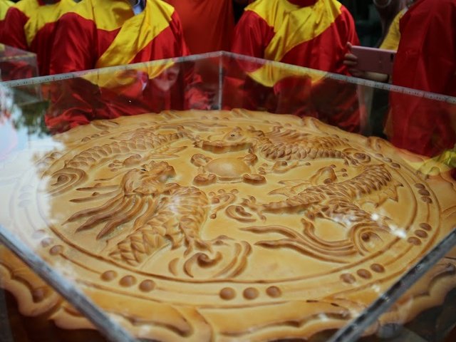 Cặp bánh trung thu to nhất Việt Nam có tổng khối lượng 3 tạ đã được vinh danh tại tượng đài Lý Thái Tổ, Hoàn Kiếm, Hà Nội.