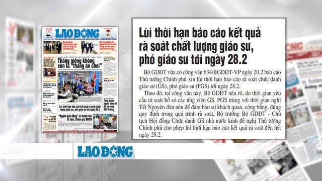 Chiều 28.2, theo nguồn tin riêng của PV Báo Lao Động, Hội đồng Chức danh giáo sư nhà nước (HĐCDGSNN) sau phiên họp ngày 27.2 đã thống nhất tạm để lại xem xét những hồ sơ “có vấn đề” hoặc khiếu kiện, khiếu nại. Đồng thời, tiếp tục xin phép Chính phủ lùi hạn rà soát đến tháng 3.