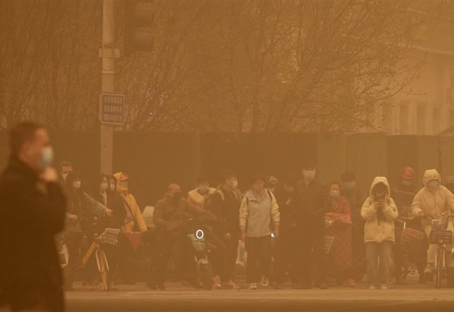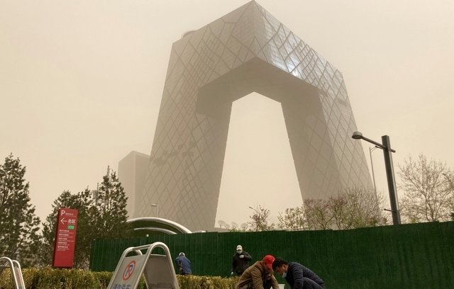 Bắc Kinh bị bao phủ bởi lớp bụi dày đặc với nồng độ bụi mịn rất cao, khi hứng chịu trận bão cát thứ hai trong hai tuần do gió từ Mông Cổ và tây bắc Trung Quốc.