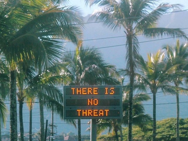 Giao thông ngưng trệ, nhiều người bỏ chạy, trú ẩn trong phòng tắm, sau khi nhận được thông báo một tên lửa đang chuẩn bị tấn công Hawaii.