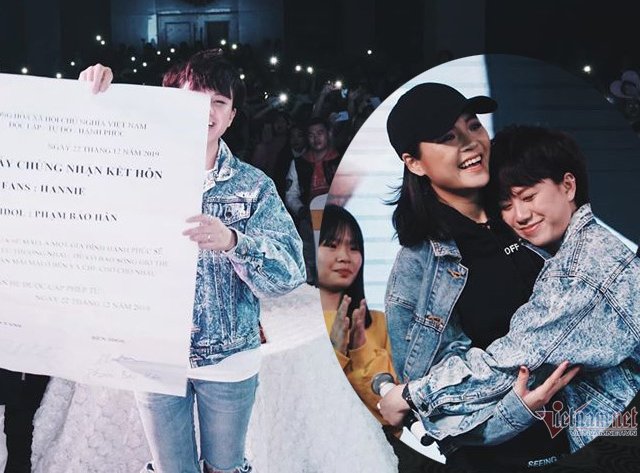 Nữ diễn viên nổi tiếng với vai Ánh Dương trong "Về nhà đi con" trưng giấy kết hôn "khủng" và bày tỏ tình cảm với Thu Quỳnh trước hàng trăm fan.