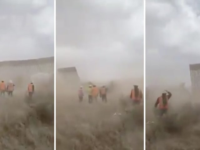 Bức tường biên giới Mỹ-Mexico mà Tổng thống Donald Trump chỉ thị xây đã bị đổ sập một phần trong cơn bão Hanna.