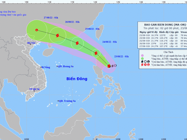 Lúc 4h hôm nay (24/8), sức gió mạnh nhất vùng gần tâm bão số 3 mạnh cấp 10 (89-102km/giờ), giật cấp 13, sóng biển cao 6-8m; biển động dữ dội.