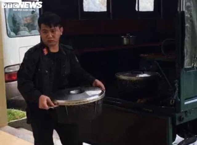 Cảnh sát nấu cơm phục vụ miễn phí dân sơ tán và tài xế mắc kẹt do bão số 9