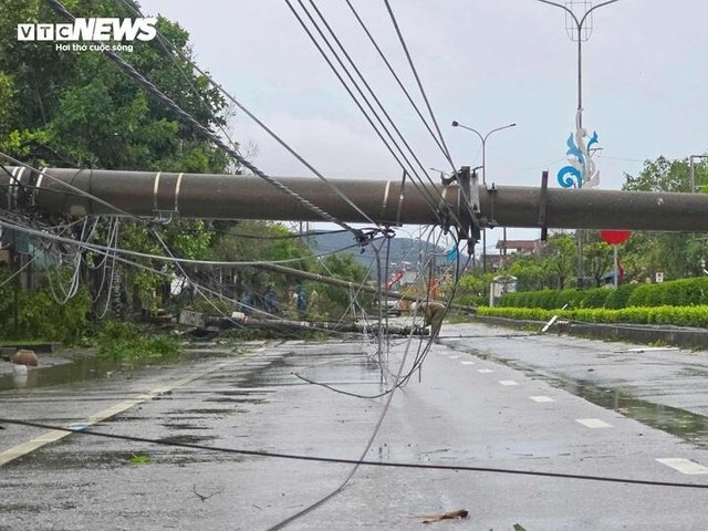 Bão số 10 tàn phá Nghệ An, khiến nhiều công trình hoang tàn, nhà dân đổ nát và đường phố ngổn ngang.