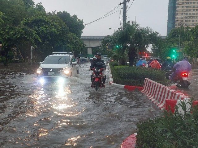 Bão vào đất liền, gió mạnh, mưa trút xuống Hà Nội