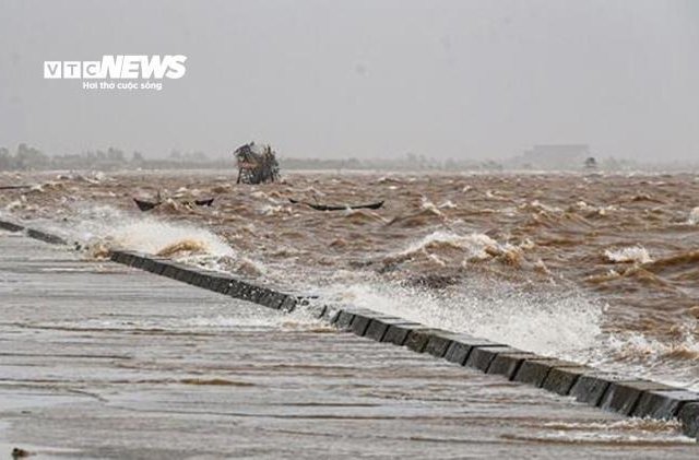 Ảnh hưởng của bão số 3 Wipha khiến nước biển dâng cao, khu vực ven biển tỉnh Hưng Yên đang có gió Đông Nam mạnh, dồn nước từ biển vào vùng bờ.
