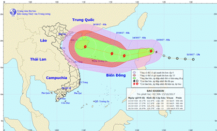 Bản tin mới nhất lúc 9 giờ sáng nay 13.10 của Trung tâm dự báo khí tượng thủy văn Trung ương cho biết Cơn bão số 11- Khanun đang di chuyển theo hướng Tây Tây Nam tiến về quần đảo Hoàng Sa và có khả năng mạnh thêm.