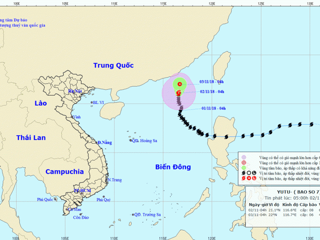 Cơn bão số 7 - Yutu gió giật cấp 12 di chuyển với vận tốc 10km/h và đổi hướng đi lên hướng Bắc.