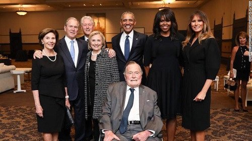 Một bức ảnh cảm động của nhiều thế hệ Tổng thống Mỹ bày tỏ lòng tôn kính bà Barbara Bush đang được chia sẻ rộng rãi trên các phương tiện truyền thông xã hội.