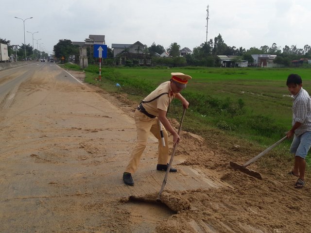Chiều 6/12, Phòng CSGT Công an tỉnh Quảng Nam cho biết, vừa bắt giữ một xe đầu kéo làm đổ chất thải xuống đường rồi sau đó bỏ chạy.