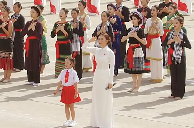 Bé gái 7 tuổi hát 'Tiến quân ca' cùng Mỹ Tâm ở Quảng trường Ba Đình