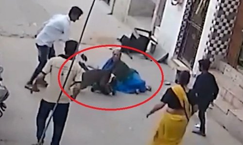 Với tay không và gậy gộc, nhóm người lớn ở New Delhi, Ấn Độ lao vào giải cứu cậu bé bị con chó giống pit bull tấn công trên đường.