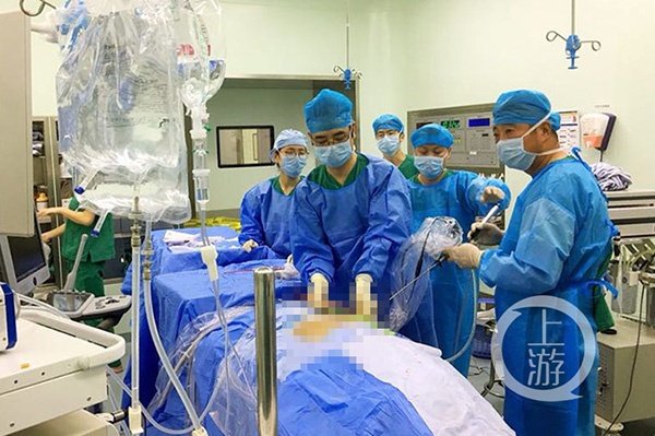 Có 8 viên sỏi đường kính từ 0,6 cm đến 2 cm bên thận trái và một viên sỏi với đường kính 4 cm ở thận phải.