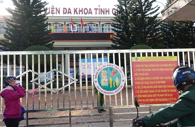 Bệnh viện đa khoa tỉnh Gia Lai ở TP Pleiku bị phong tỏa sau khi nam thanh niên đến khám có kết quả dương tính lần một, sáng 2/2.