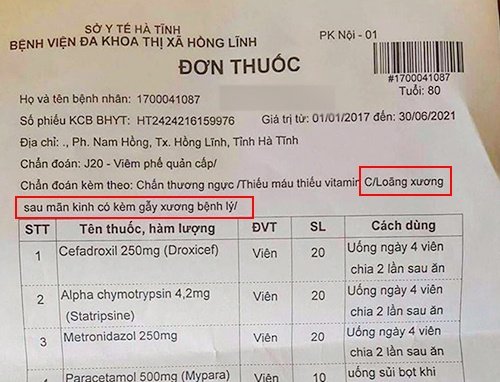 Khám chấn thương vùng ngực do va chấn, cụ ông 80 tuổi ở Hà Tĩnh được bác sĩ chẩn đoán bị "loãng xương sau mãn kinh".