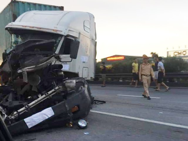 Xe container bẹp đầu sau khi tông ôtô tải trên quốc lộ 5