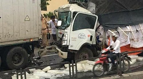 Cabin xe tải bẹp dúm khi đâm container, một người chết