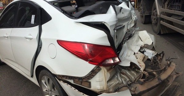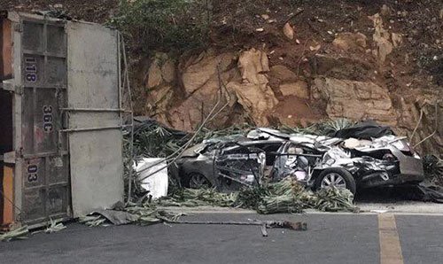 Xe tải bị lật, đè bẹp dúm ôtô 4 chỗ mới mua