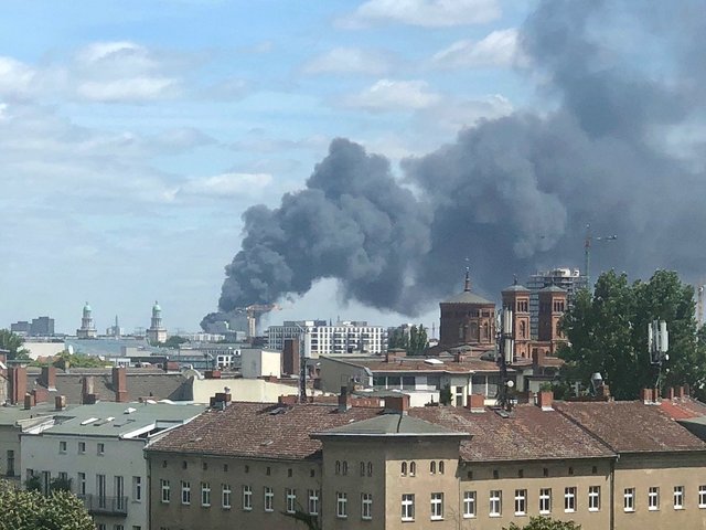 Theo Sputnik, chợ Đồng Xuân của người Việt ở Berlin (Đức) đang cháy. Khói đen bốc lên từ đám cháy có thể được trông thấy từ cách đó vài cây số.