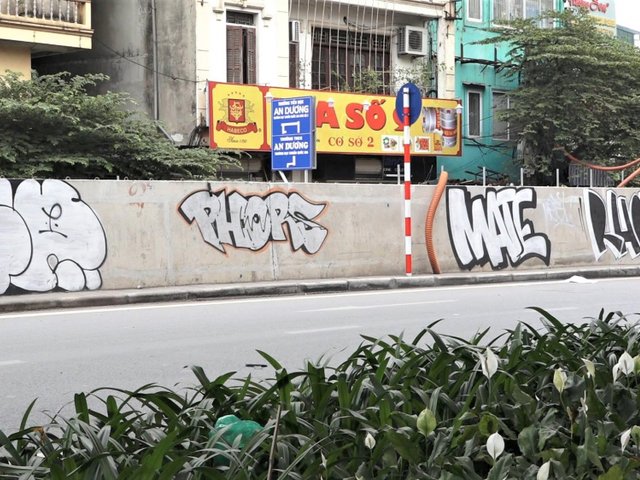 Nhiều người dân bức xúc vì đường đê Nghi Tàm (Hà Nội) vừa được sửa chữa đã xuất hiện dày đặc những hình vẽ, thậm chí cửa cuốn của nhà dân bên đường cũng bị bôi bẩn.