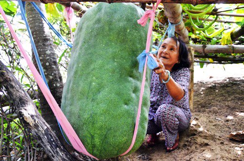 Những trái bí đao ở thôn Chánh Trạch, xã Mỹ Thọ, huyện Phù Mỹ nặng bằng một người lớn nhờ thổ nhưỡng phì nhiêu hiếm có.