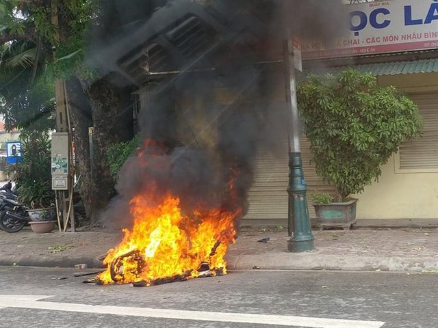 Chạy xe máy lạng lách bị 2 thanh niên đuổi đánh, đốt xe
