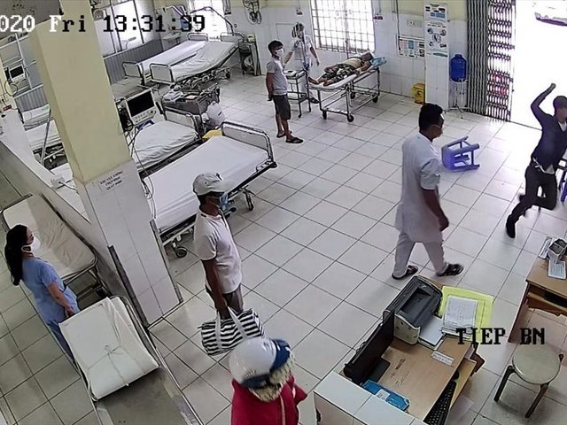 Không đeo khẩu trang khi vào bệnh viện, bị bảo vệ nhắc nhở và yêu cầu thực hiện để đảm bảo an toàn phòng dịch COVID-19 nam thanh niên dùng dao tấn công bảo vệ bệnh viện .