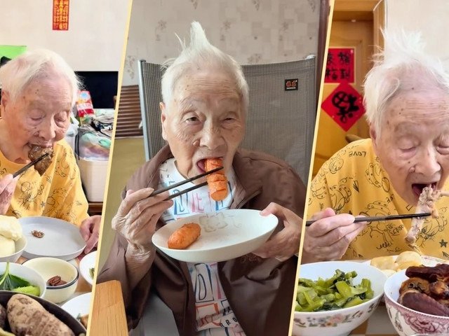 Ở tuổi 100, một cụ bà ở Thượng Hải vẫn uống nước ngọt, trà sữa, thưởng thức hải sản thỏa thích như người trẻ và thậm chí làm video “mukbang”, thu hút hàng chục nghìn người xem trên mạng xã hội.