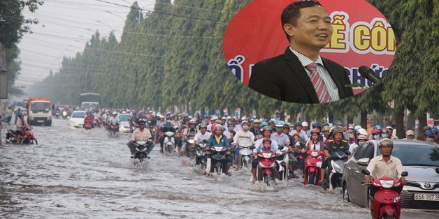 Thầy giáo khiêng xe máy băng qua nước lũ đến trường